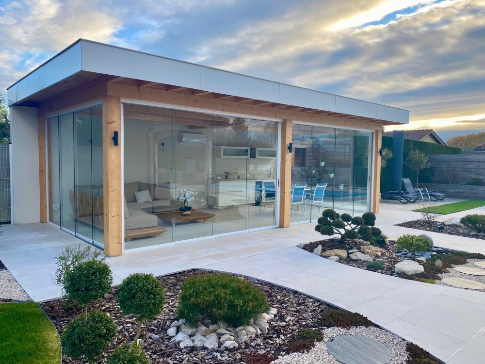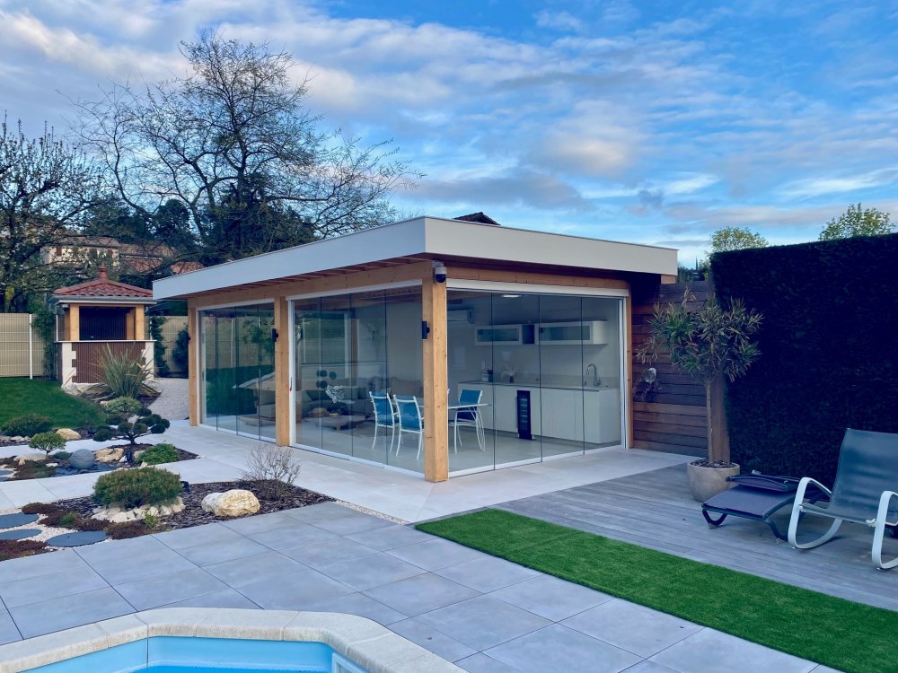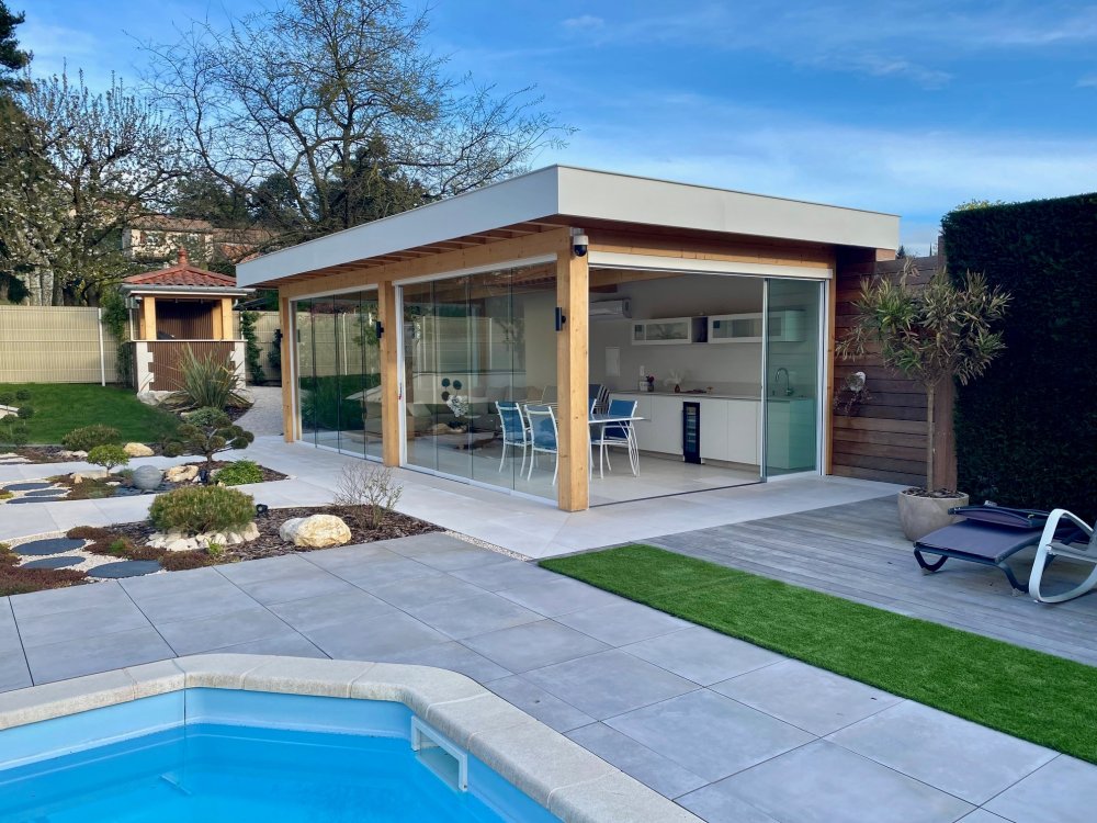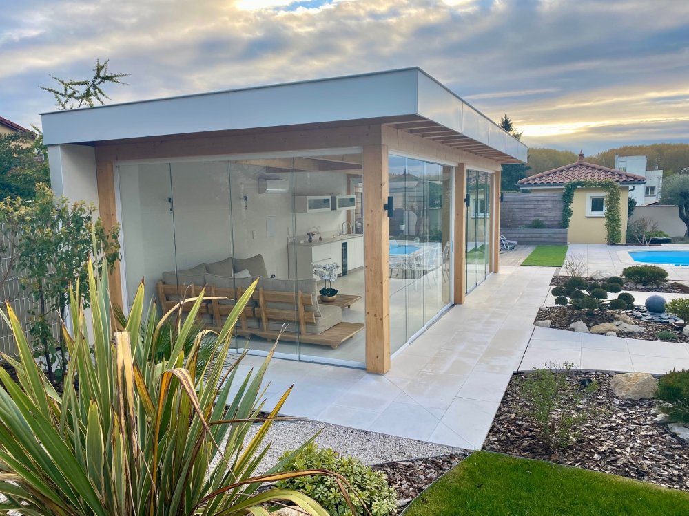 Fermeture complète de pool-house sur mesure : un espace extérieur transformé en véritable lieu de vie proche de Villefranche-sur-Saône