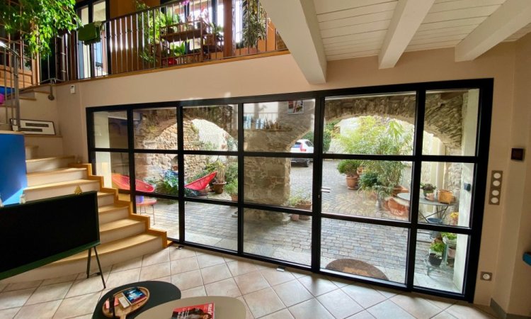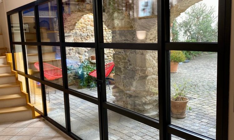 Projet aménagement intérieure grâce à l'installation d'une verrière sur-mesure dans une maison en pierre voûtée dans le Rhône (69)