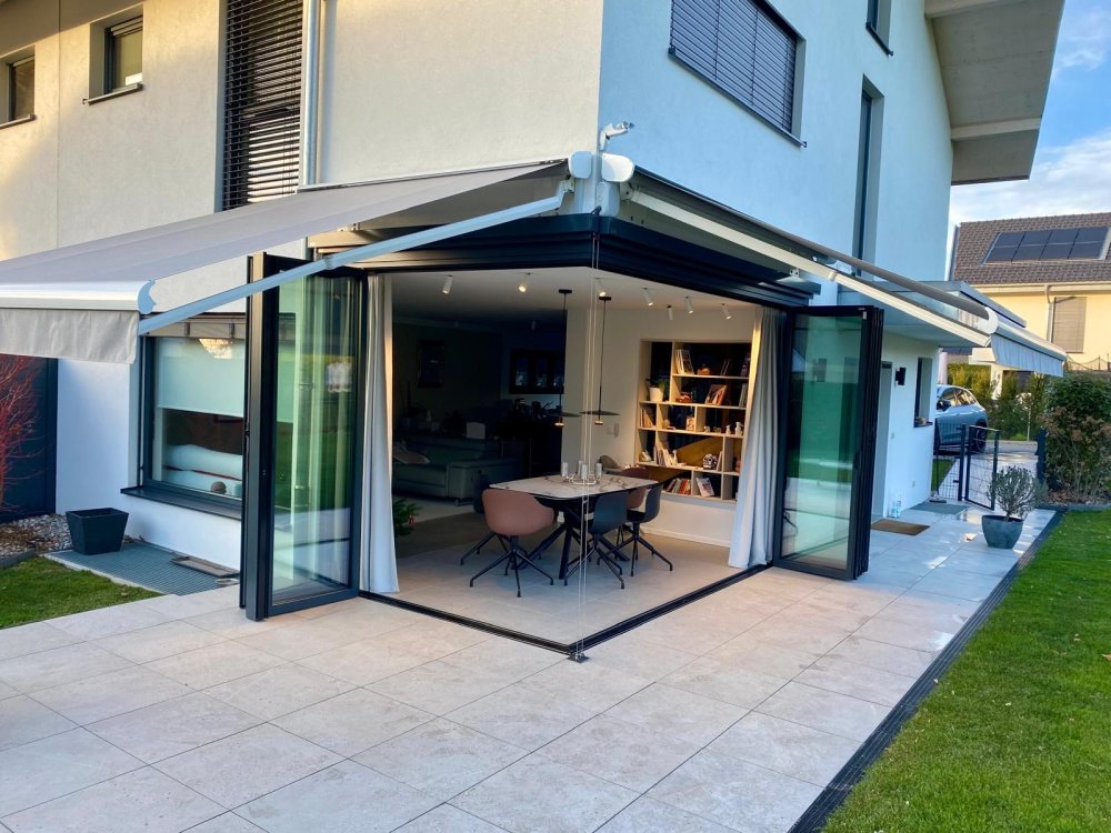 Chaque élément de la baie accordéon a été conçu sur-mesure pour s’adapter parfaitement à l’existant, garantissant une finition impeccable et une intégration harmonieuse à l’habitation.